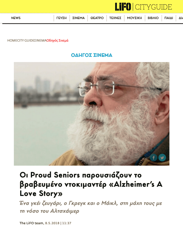 Οι Proud Seniors παρουσιάζουν το βραβευμένο ντοκιμαντέρ «Alzheimer’s A Love Story»