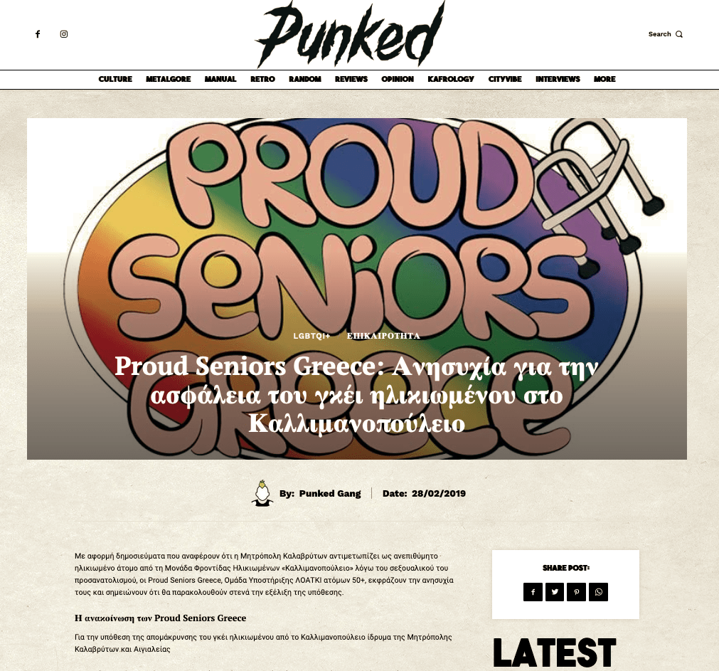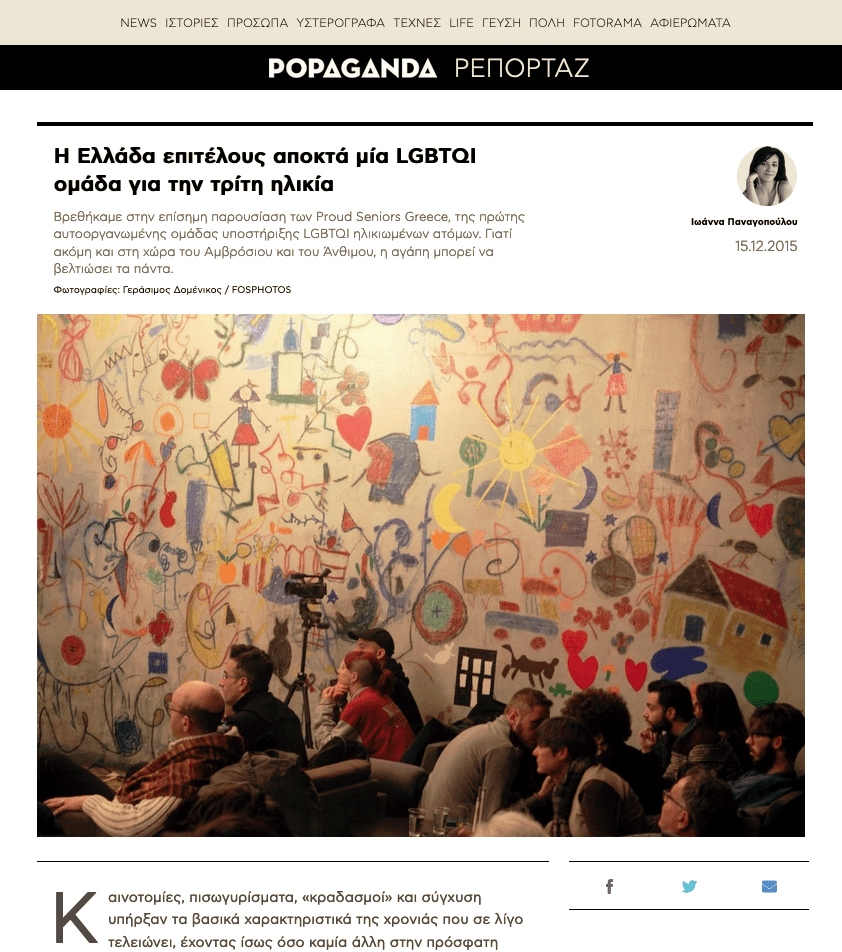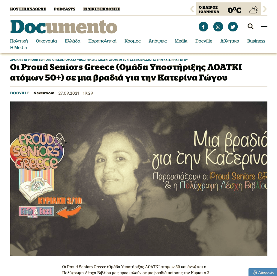 Οι Proud Seniors Greece (Ομάδα Υποστήριξης ΛΟΑΤΚΙ ατόμων 50+) σε μια βραδιά για την Κατερίνα Γώγου