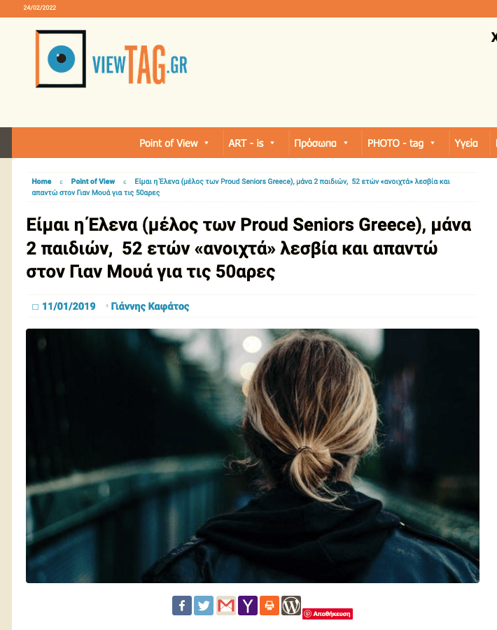 Είμαι η Έλενα (μέλος των Proud Seniors Greece), μάνα 2 παιδιών, 52 ετών «ανοιχτά» λεσβία και απαντώ στον Γιαν Μουά για τις 50αρες